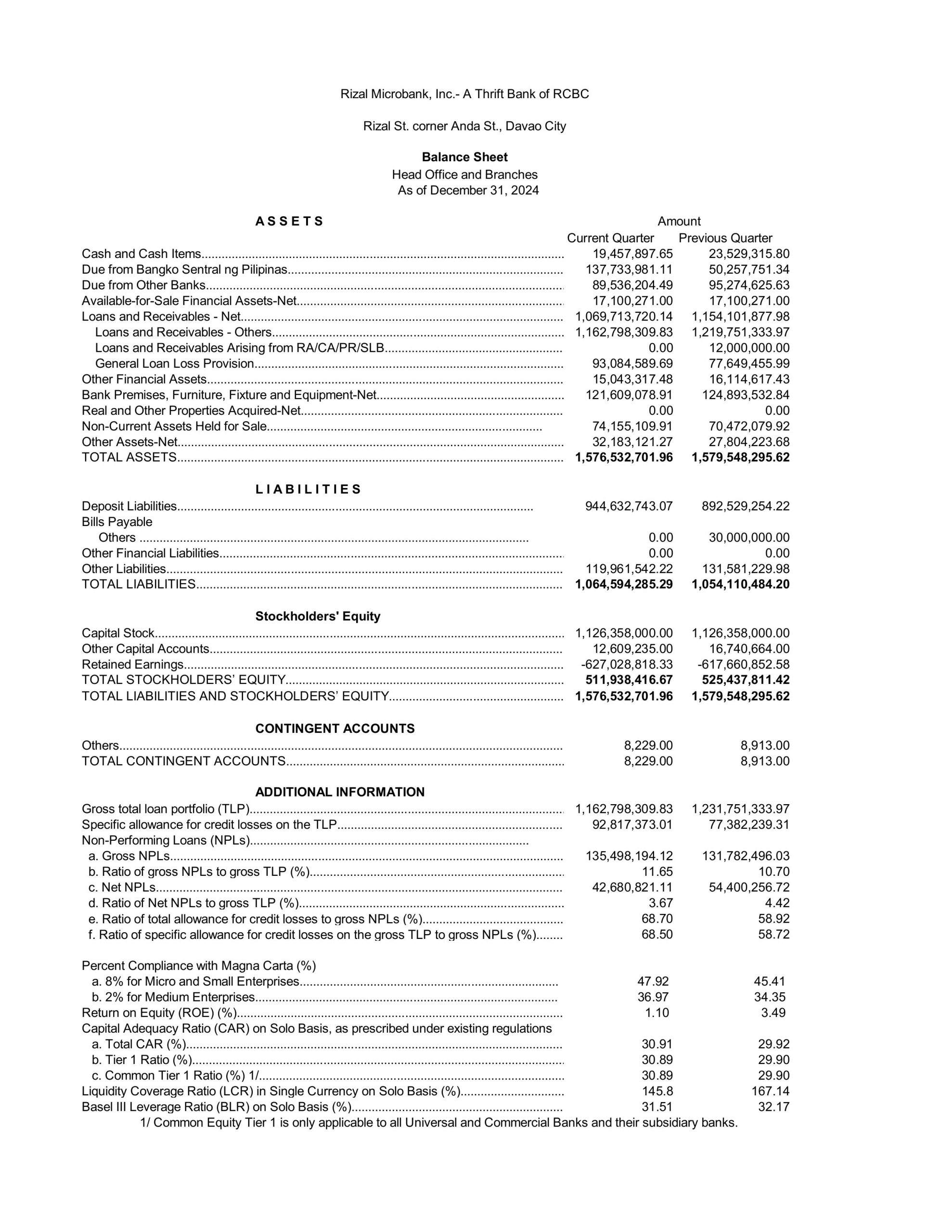 Balance Sheet as of December 2024